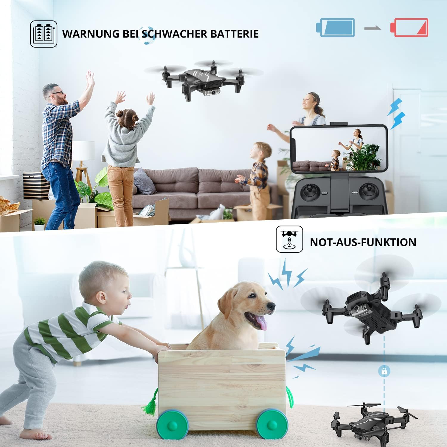 - Longer flight time and portability: equipped with 2 batteries, the aircraft time can reach up to 20 minutes (30% longer than other products in the same price range). The folding case makes it easier to take with you and play with the children.