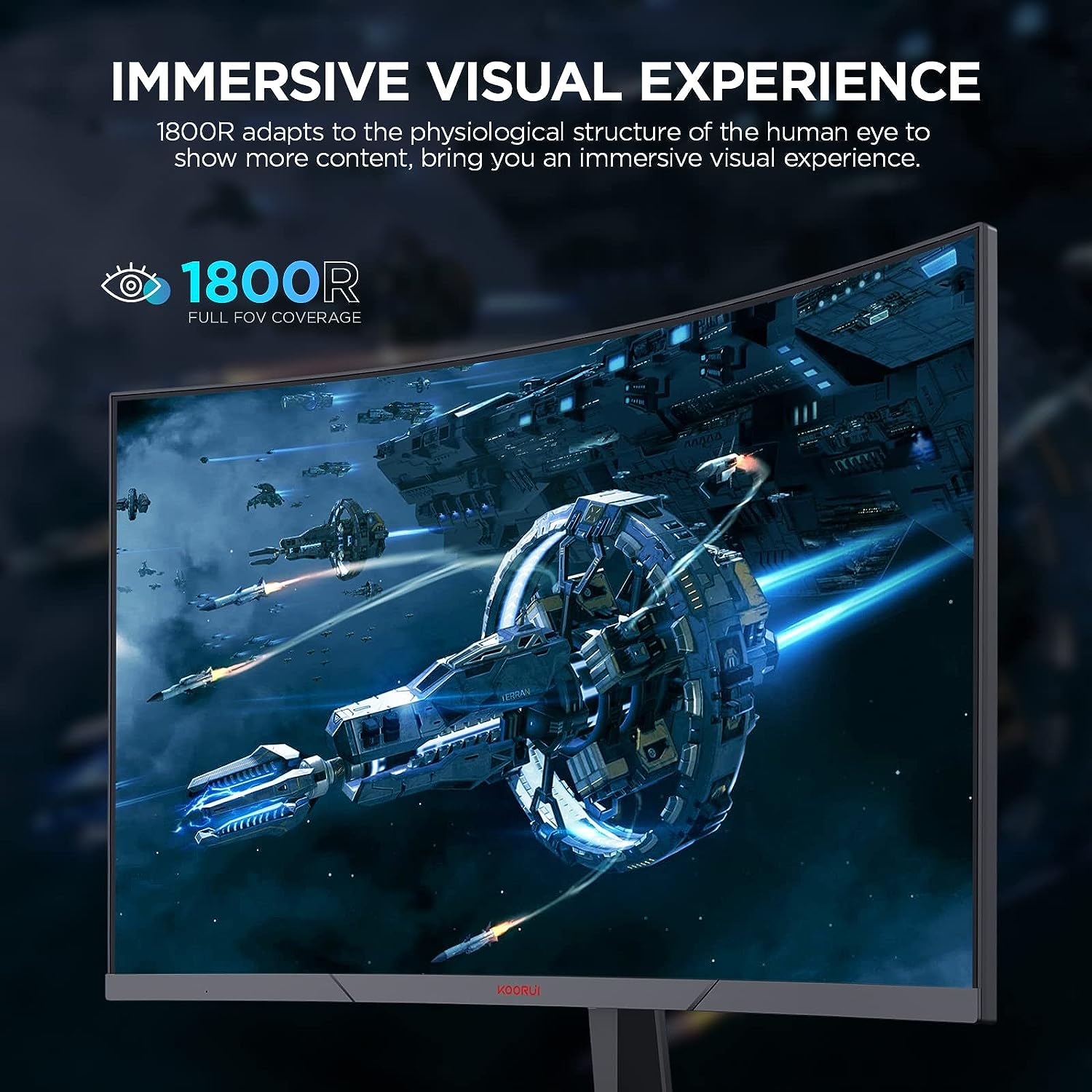 - Immersive 1800R Curvature The KOORUI 24E6C offers an impressive 1800R curved display that lets you immerse yourself deep into your gaming experience. The gentle curvature provides a captivating and realistic viewing experience.