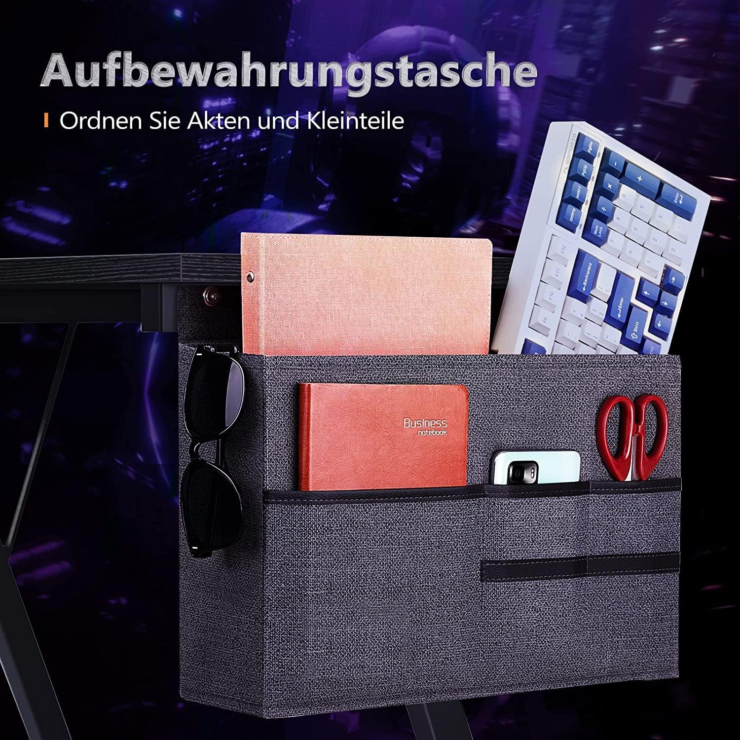 • 【Flexible use】: The monitor shelf can be moved as you like and according to your needs. The iron hook can be attached either left or right according to your usage habits. Besides, the interchangeable storage bag can organize files and small items, making your desk much cleaner.