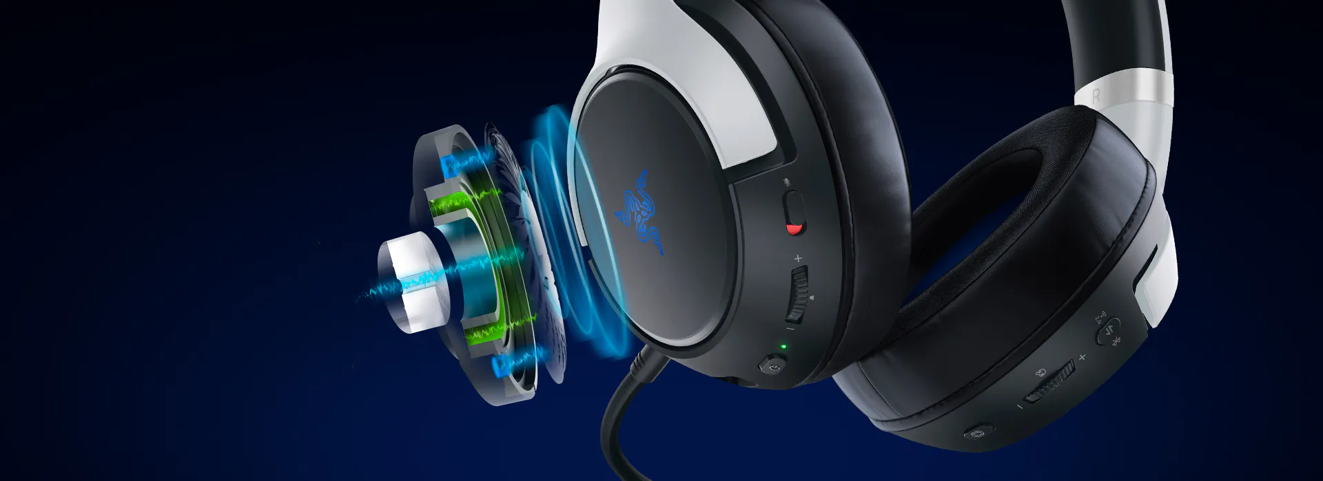Multi-platform wireless gaming headset with haptic feedback powered by Razer™ HyperSense.
