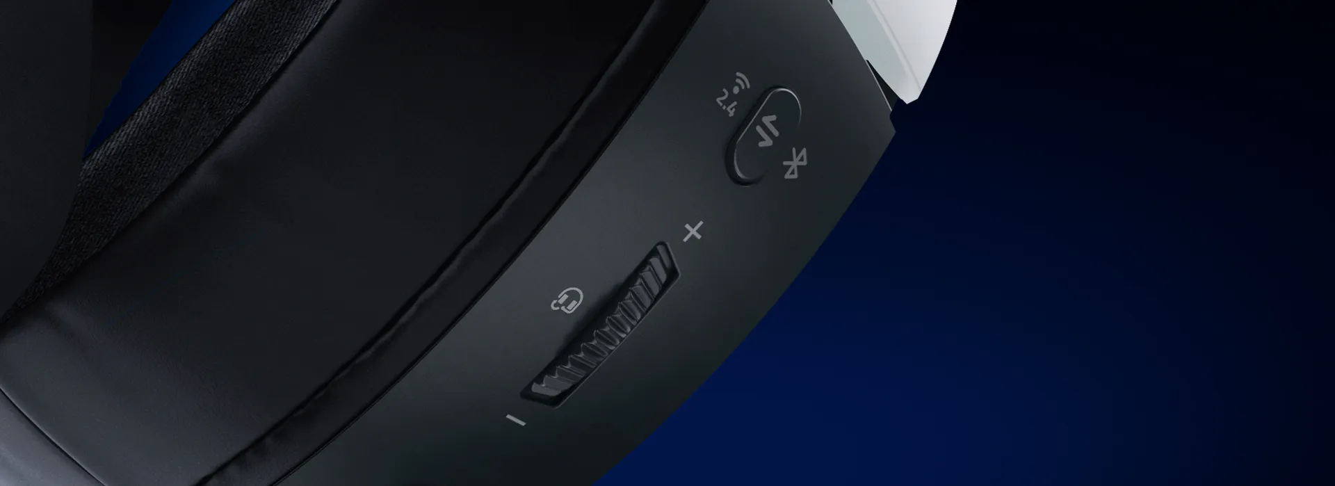 Real-time audio-to-vibration conversion provides adjustable tactile feedback through the ear cups.