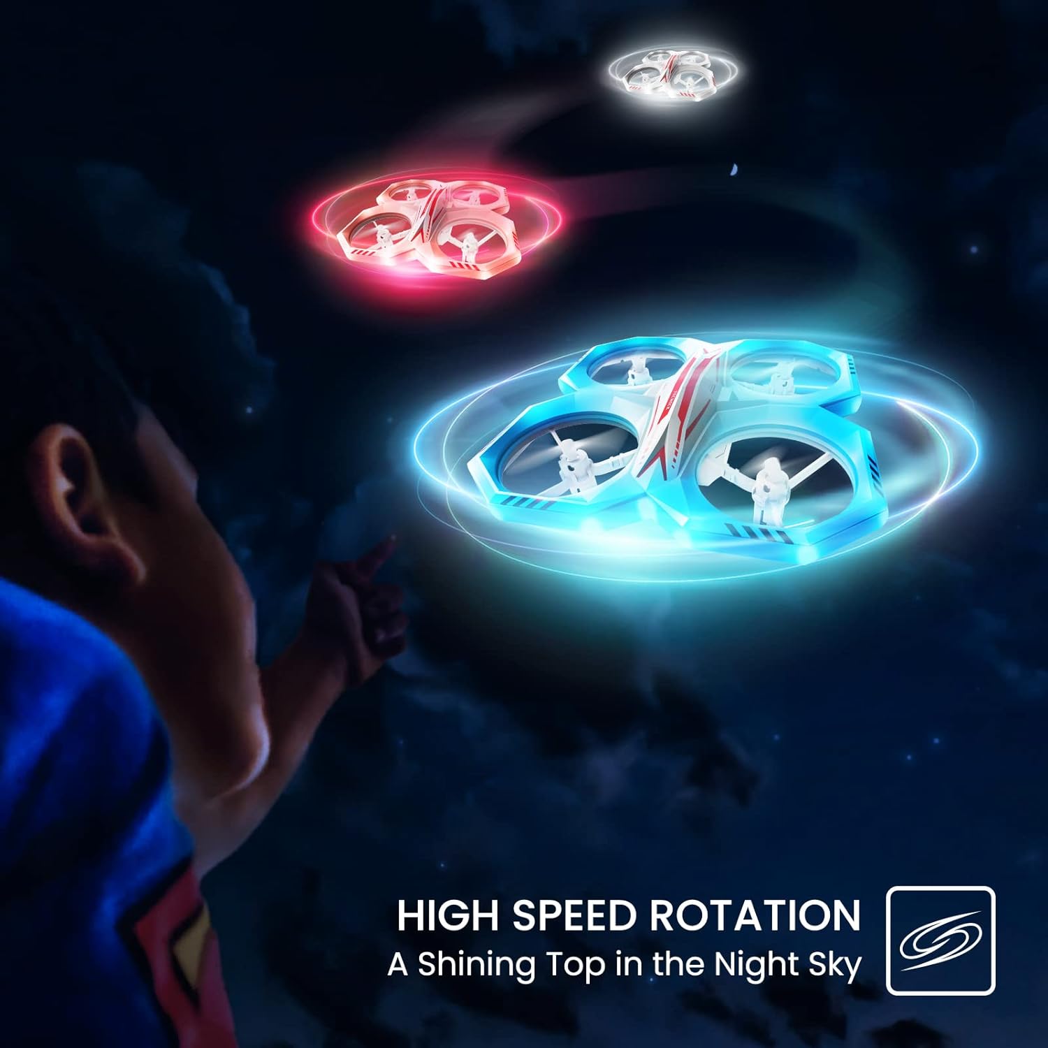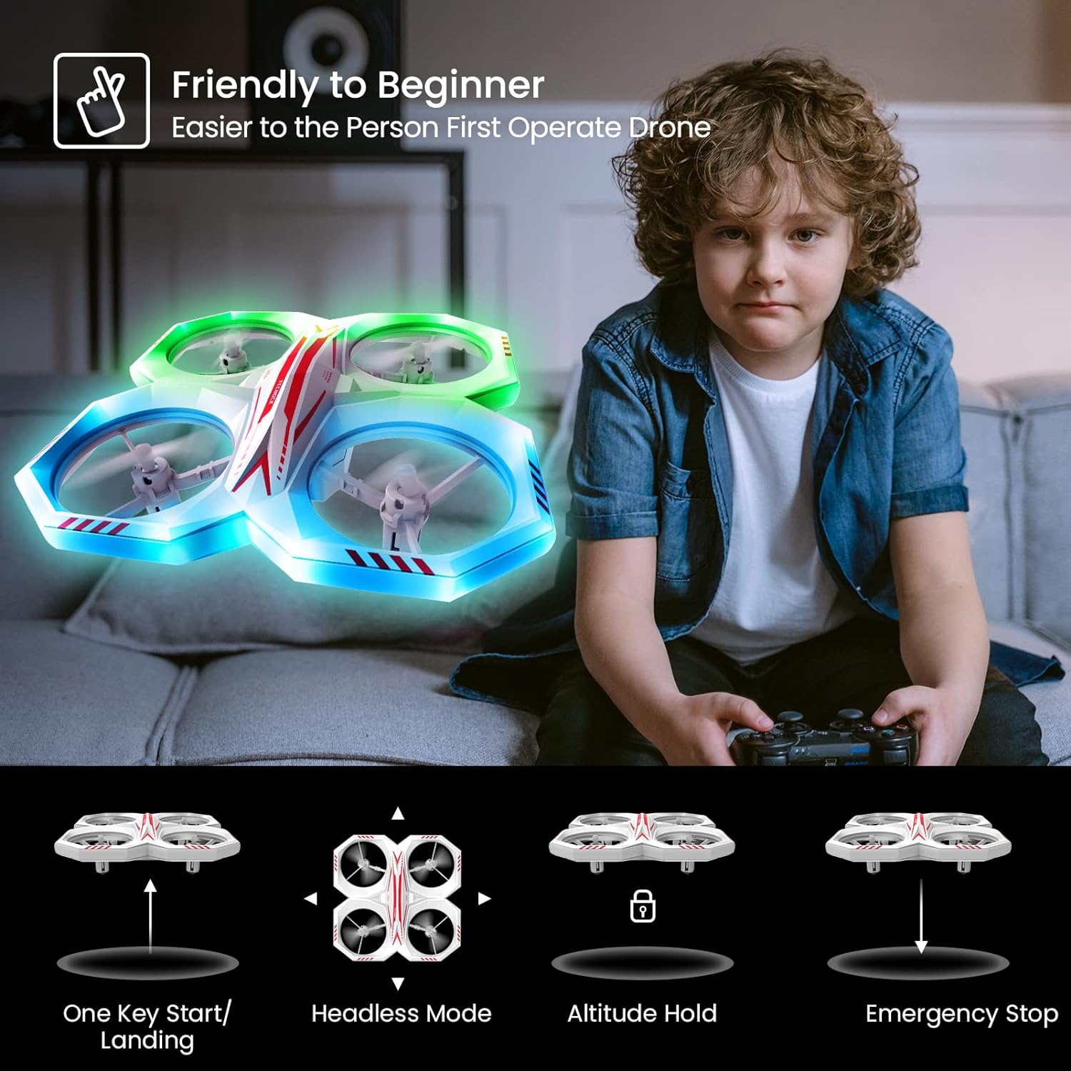 Tecnock Drone for Children, Mini Drone with 11 LED Light Modes, 2 Batteries, Long Flight Time, RC Quadcopter with 3D Flips, Altitude Hold and Headless Mode, Toy Drone for Children and Beginners